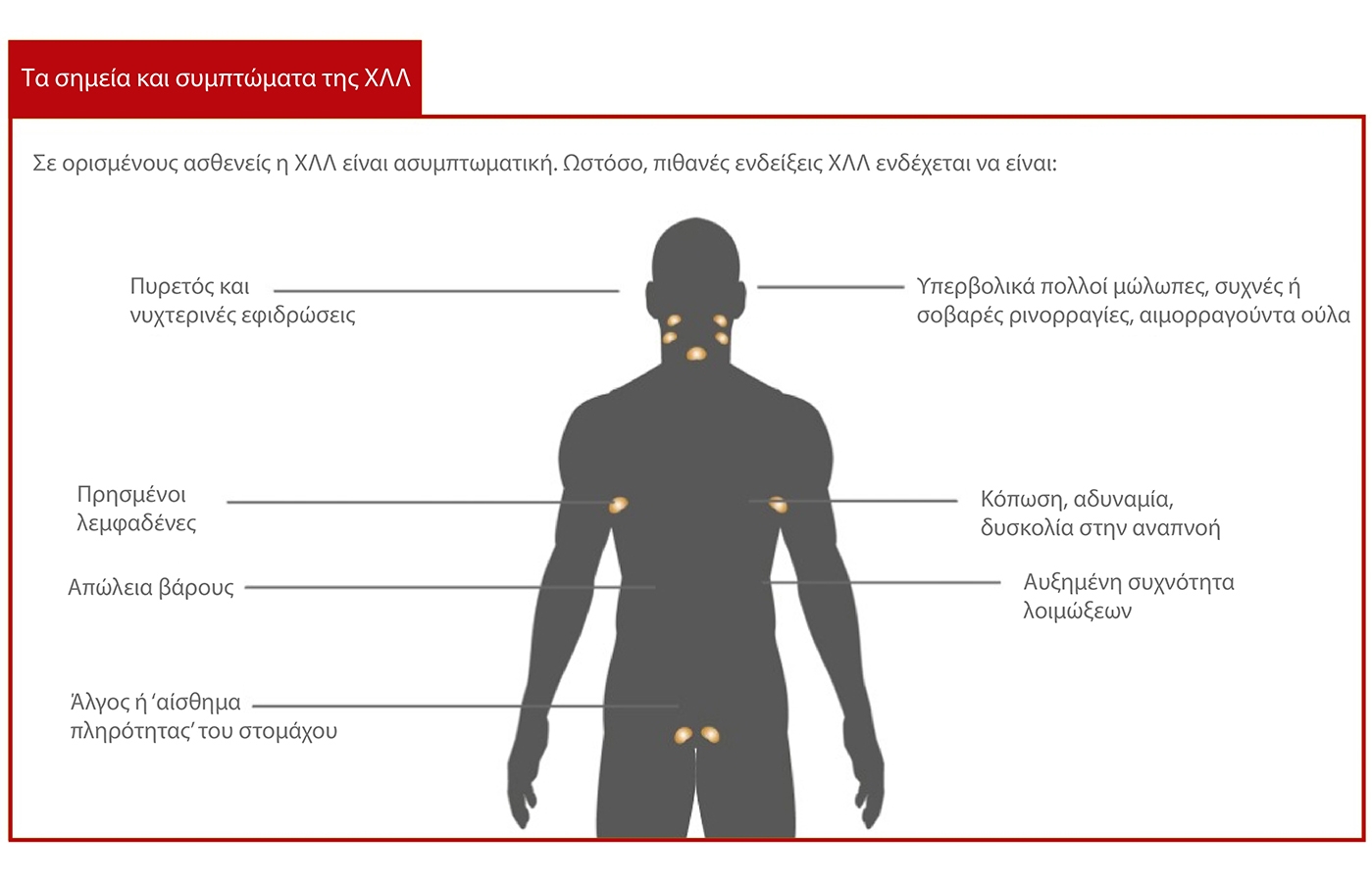 Η ΧΛΛ συχνά εντοπίζεται κατά τη διάρκεια εξετάσεων ρουτίνας και αιματολογικών εξετάσεων που διεξάγονται για άλλα προβλήματα υγείας, καθώς τα κακοήθη κύτταρα ανιχνεύονται εύκολα στο αίμα.2